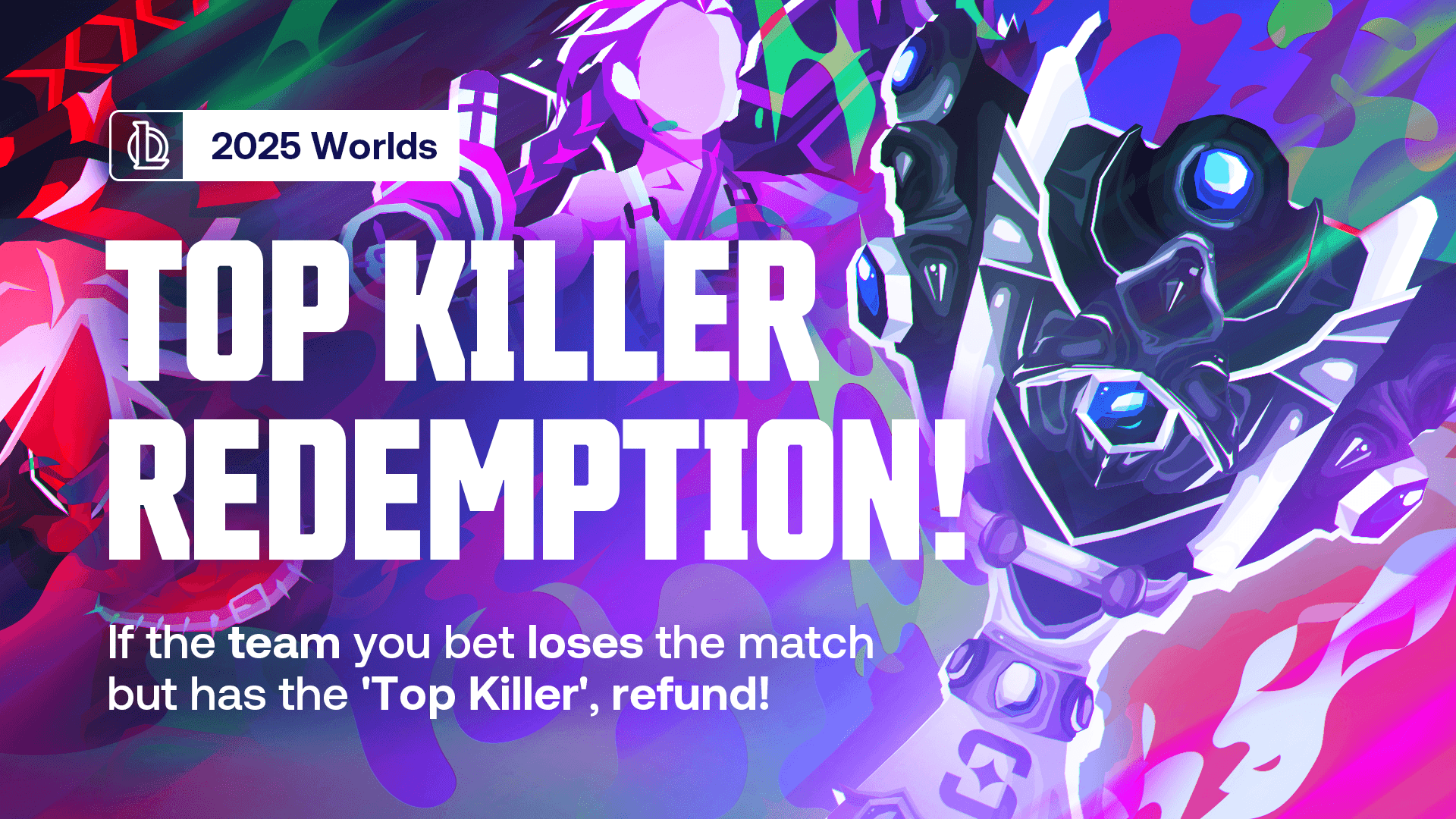 For the entire League of Legends Worlds 2025 Tournament, if the team you back has the Top Killer for the entire match but loses, refund!